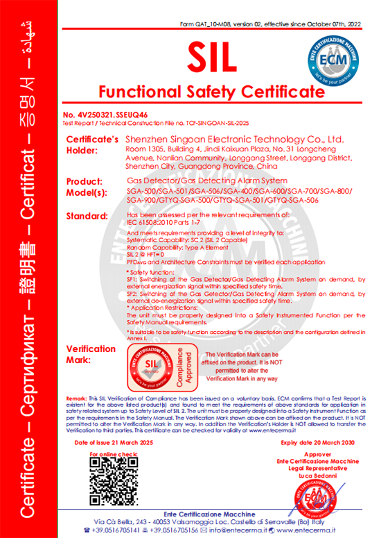 喜訊!深國安電子再次獲得SIL認證證書,這一榮耀時刻不僅標志著深國安在氣體檢測領域的專業(yè)實力再次得到了國際權威機構的認可,也預示著其在工業(yè)安全防護方面邁上了新的臺...