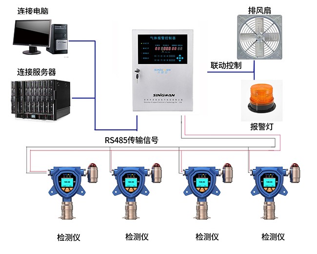 5.現場3級聲光報警,繼電器輸出(外接排風等外部設備)