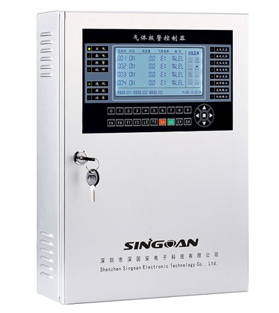 SGA-800A報警控制器為深國安電子獨立研發(fā)生產的一款總線制液晶顯示型氣體控制器;客戶只需布一條四芯電纜線,即可最多將199路氣體檢測儀串聯(lián)在一起,實現(xiàn)一個主機監(jiān)控多路氣體檢測儀的目的;當現(xiàn)場連接的任意1路氣體檢測儀達到預設報警點時,控制器會自動發(fā)出85分貝以上的聲光報警,提醒人員安全撤離;還可將系統(tǒng)自帶的繼電器與風機、切斷閥等聯(lián)動設備相連,自動處置險情。
