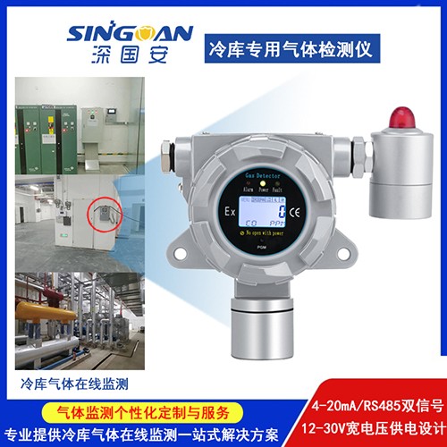 由于冷庫行業內相對環境密閉,而氟利昂特性,比空氣質量重,會下沉到地面累積,故機房氟利昂濃度越來越高,氧氣濃度越來越低,給維護人員進入機房造成安全隱患。因此,深國安建議需要安裝氟利昂檢測儀、氧氣檢測儀等設備來實時監測冷庫內制冷機房氟利昂氣體和測量氧氣濃度兩大問題!