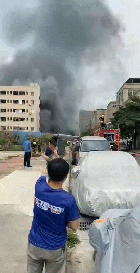 廣東東莞一廠房發(fā)生火災(zāi)事故,現(xiàn)場黑煙漫天
